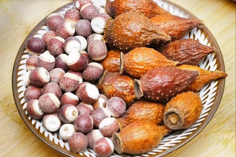 For this condition, the herbal pair of Fructus Rosae Laevigatae (Jinyingzi) and Semen Euryales (Qianshi) is quite effective. Fructus Rosae Laevigatae has a sour and astringent flavor; sourness and astringency have a consolidating effect, which can help retrieve and consolidate the essence of the kidneys that is leaking out, thus improving conditions of seminal emission. Semen Euryales is even more powerful; it not only strengthens the spleen and eliminates dampness but also tonifies the kidneys and secures essence. The spleen is the foundation of postnatal health and the source of qi and blood production. By nourishing the spleen and ensuring sufficient qi and blood, the kidneys also receive nourishment. These two herbs work together—one consolidating and one tonifying—strengthening the kidney's ability to store essence from the root and replenishing the depleted kidney essence.